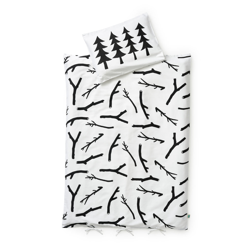 From our Skogen Collection comes the Twigs Duvet Set, inspired by nature. There is a kid in all of us that just loves collecting twigs and branches! Cozy up with a soft and cuddly pile of sticks. This black and white print looks awesome in any little ones room!  Bring a little nature indoors with our Twigs Duvet Set!