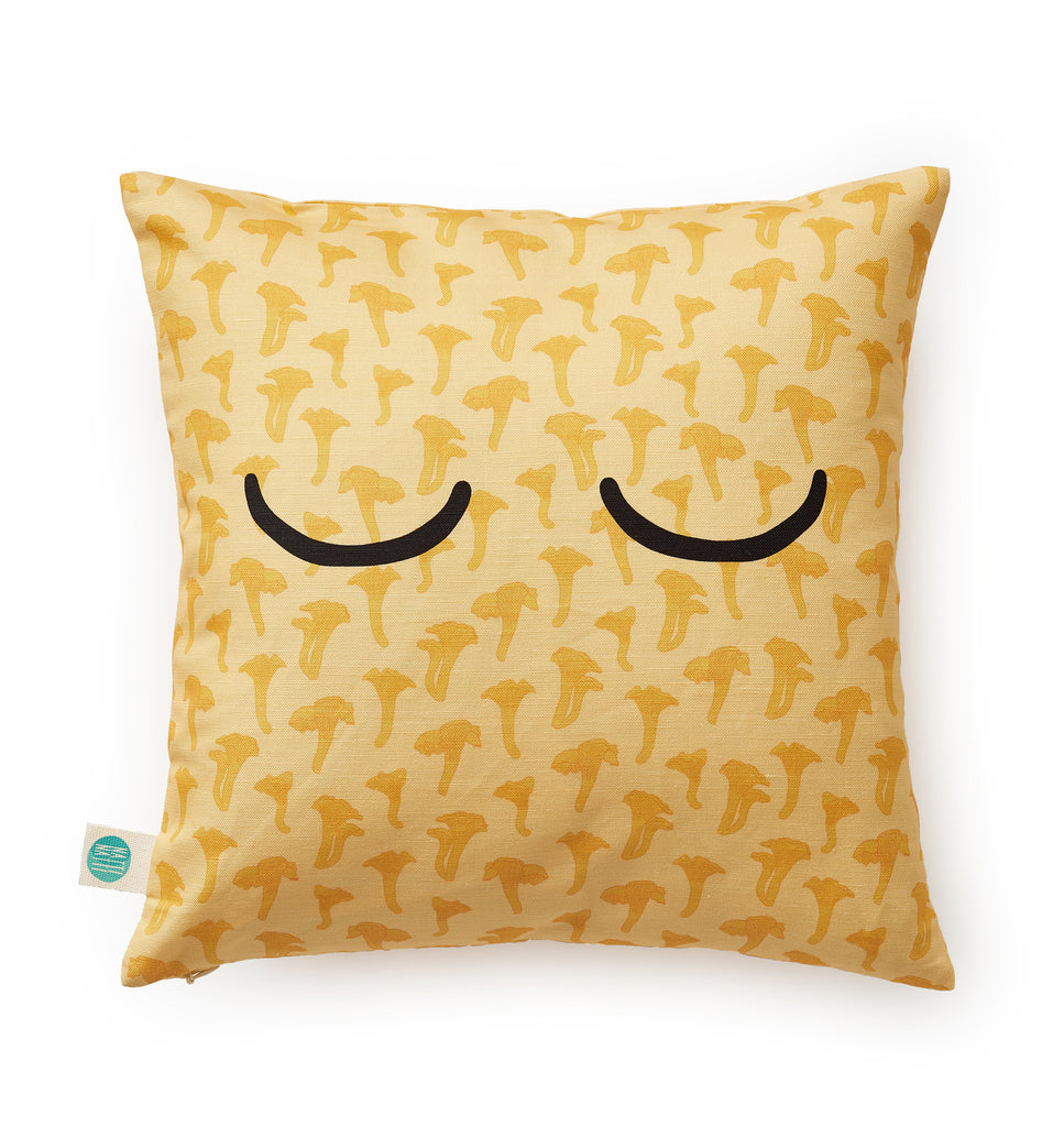 This mormor pillow includes an eco-friendly pillow insert and the removable pillow cover in Kantarell print.